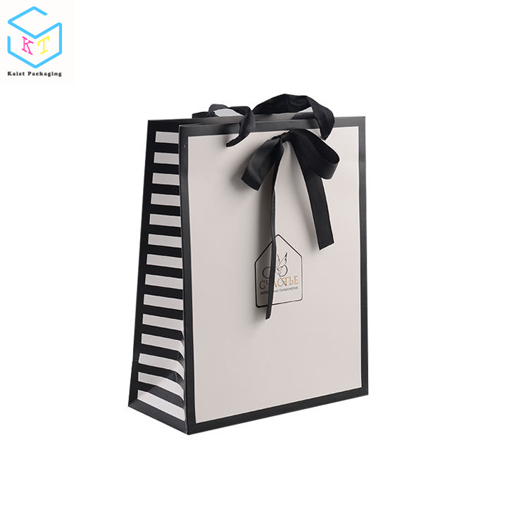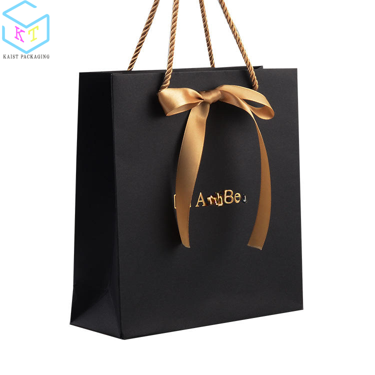 Custom logo Coated Paper Ribbon Handle Black Paper Shopping Underwear paper Bag