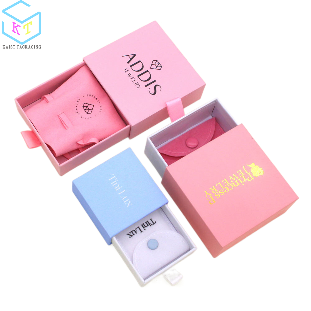 Custom pink cardboard rigid jewelry sliding ring earring drawer box jewelry packaging with logo$ 4.00MORE